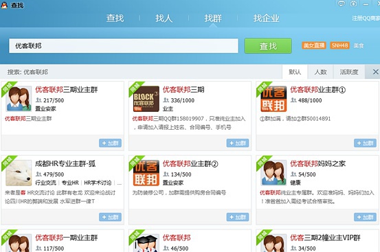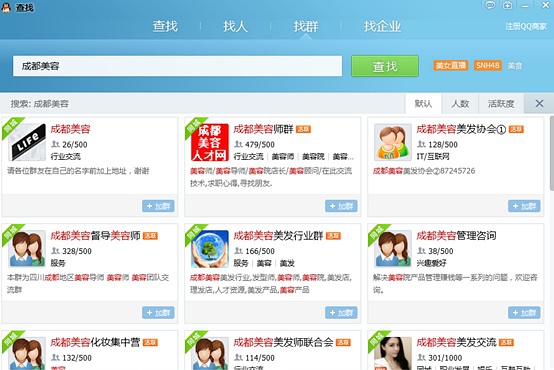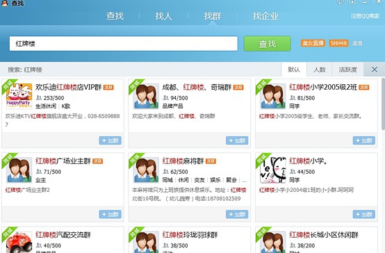 有很多找到精准鱼塘的办法,其中通过查找本地一些QQ群就是非常不错的一个。本地QQ群把各种各样的人群聚焦在不同的群里,都已经分门别类了,比如以一家在成都红牌楼广场做水果配送的商家为例,你可以输入附近小区名、地标性建筑、广场或者大型的商家名字等。不管你卖什么,总能找到合适的群。